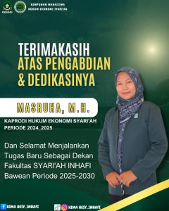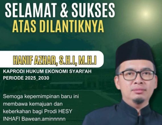 Pasca alih status dari Sekolah Tinggi Agama Islam Hasan Jufri Bawean (STAIHA) menjadi Institut Agama Islam Hasan Jufri Bawean (INHAFI), maka ada perubahan yang cukup signifikan dalam tubuh truktural INHAFI, yaitu dengan bertambahnya jumlah struktural dan juga bergantinya beberapa struktural. Di antara struktural yang mengalami pergantian adalah Ketua Program Studi Hukum Ekonomi Syariah. Kaprodi Hukum Ekonomi Syariah sebelumnya dijabat oleh Masruha, S.Sy, M.H. yang dilantik pada September 2024, kini diganti oleh Hanif Azhar, M.H.I. sedangkakan Masruha,S.y. M.H. menjabat sebagai Dekan Fakultas Syariah dan Bisnis Islam.